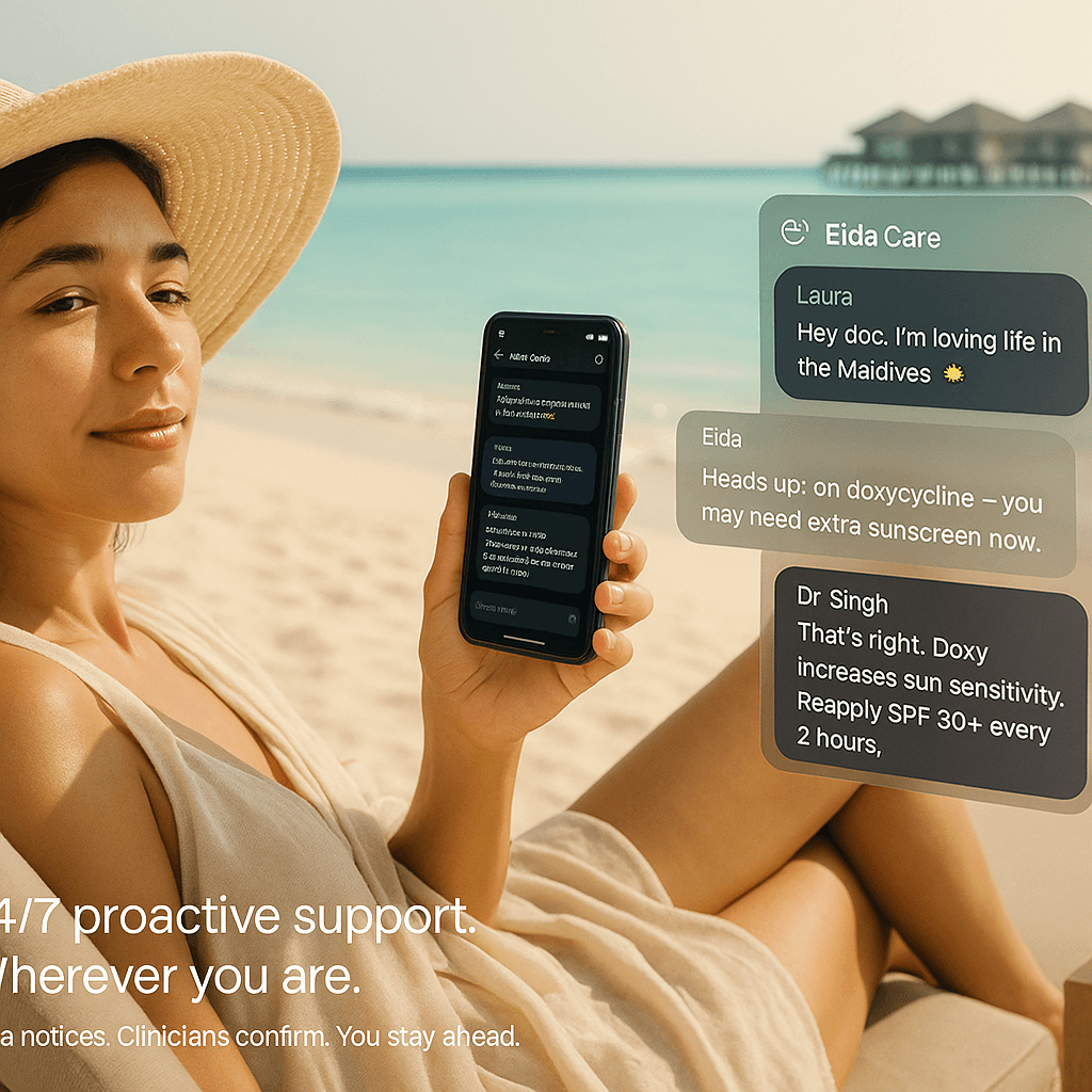 You’re never on your own: If something needs attention, Eida can quietly loop in a clinician. You get expert support, without having to chase it.